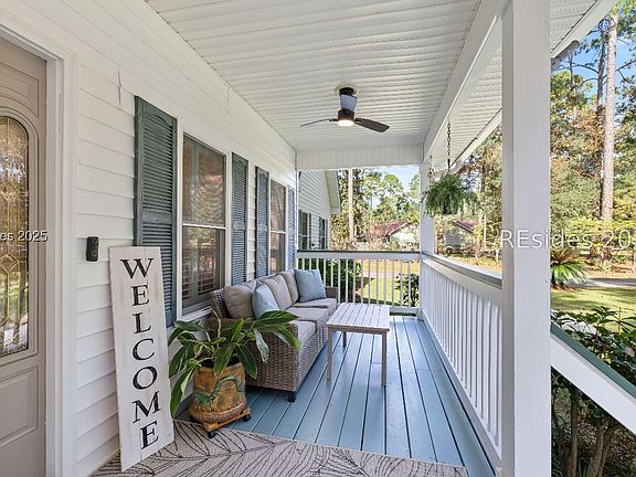 Welcome to 525 Sams Point Road, a private Lowcountry retreat set on 1.29 acres and tucked back from the street. Surrounded by natural beauty, this home offers a peaceful escape with an inviting outdoor setting. Inside, vaulted ceilings and abundant natural light highlight spacious living areas, while the kitchen impresses with quartz countertops, custom cabinetry, relocated pantry, new refrigerator, and double oven. Thoughtful upgrades run throughout, including LVP flooring, freshly painted interiors, a refreshed front door with updated hardware, and all new indoor/outdoor light fixtures. Bathrooms were updated with modern fixtures and fan, while HVAC improvements include routine maintenance and UV lights installed in 2025.Outdoors, an open yard is framed by mature foliage with 11 trees thoughtfully removed to enhance space and usability with a well used for irrigation and a new Wi-Fi enabled sprinkler control panel. With its blend of modern finishes, comfort, and over an acre of privacy, this home perfectly captures Lowcountry living.