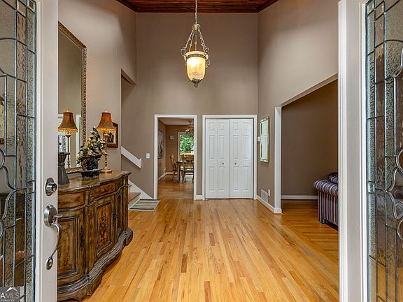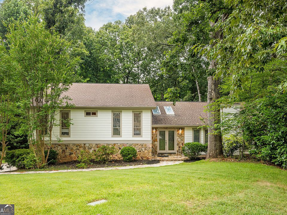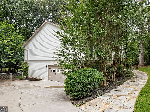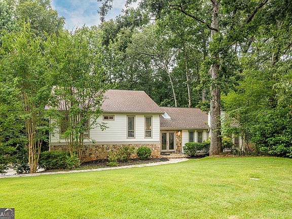 Welcome to this beautifully updated split-level home nestled in the highly sought-after swim and tennis community of Woodland Forest. Perfectly situated on a quiet cul-de-sac, this property boasts lush, mature landscaping and towering trees that create a private, serene setting. Step through elegant leaded glass double doors into the soaring two-story foyer, where skylights and a tongue-and-groove wood ceiling set a warm and welcoming tone. The bright and airy living room features a vaulted ceiling and striking stone fireplace, flowing seamlessly into the vaulted dining room with sliding glass doors that open directly onto an expansive new deck-ideal for entertaining or enjoying peaceful mornings overlooking the private, fenced backyard. The updated gourmet kitchen is a chef's dream, featuring rich stained cabinetry, granite countertops, tile backsplash, gas cooktop, breakfast bar, a dedicated computer desk, and a double pantry. The adjoining breakfast room offers a perfect place to gather, with convenient access to the outdoor living space. Upstairs, the oversized owner's suite provides a luxurious retreat with a fully renovated spa-inspired bath featuring dual vanities, a frameless glass shower with dual shower heads, and a large walk-in closet. Two spacious secondary bedrooms share a beautifully appointed hall bath. The versatile lower level includes a fourth bedroom and full bath, along with a cozy, paneled family room that walks out to the lower patio and level backyard-perfect for guests, multi-generational living, or a private home office setup. Gleaming hardwood floors flow throughout the home, and the garage includes a dedicated workshop area for added functionality. Residents enjoy private, walkable access to the neighborhood pool, tennis courts, and playground, along with a premier Sandy Springs/Dunwoody location just steps from Woodland Elementary, Dunwoody Village, shopping, dining, and entertainment. With quick access to GA-400 and major interstates, this is truly an exceptional opportunity to enjoy the best of both lifestyle and location