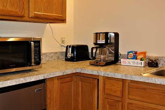Large studioQueen bedNew bathAccess to large deckPull out couchNew furnishingsNice kitchen