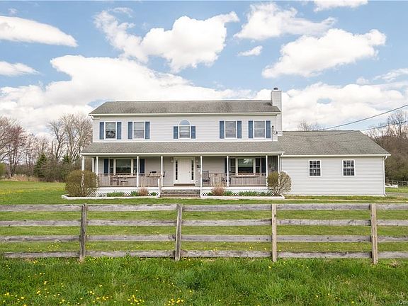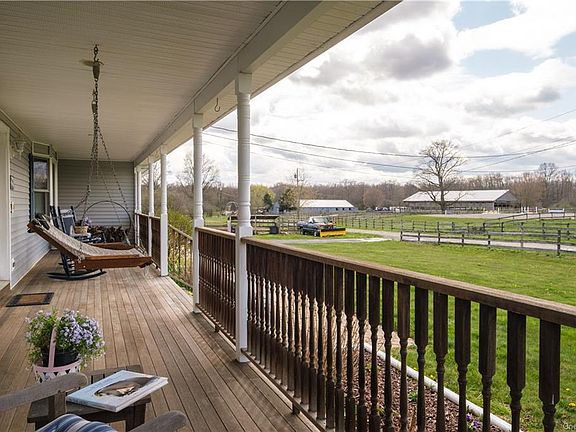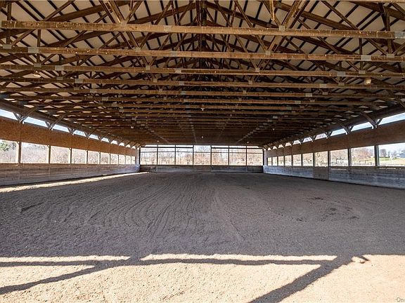 River Edge Farm, a fully operational, 70.5 acre income producing horse facility, 5 mi from Village of Goshen. Colonial home, built 2004, Goshen School district. 2688 sq.ft., 4 BR/2.5 BA. Generously sized rooms, master BR w/en-suite bath+oversized walk-in closet. Formal LR w/bay window, FR w/wood burning FP, kitchen w/plenty counter space, formal DR, breakfast room w/sliders to backyard paver patio+above ground pool. Oversized 3 car garage w/laundry/mud room entry. Full, unfinished basement adds plenty of storage. Farm amenities include: 23-10x12 stall, center aisle horse barn w/outside stalls, hay loft, hot+cold water, feed room, tack room, heated bathroom, office + loft storage. 70x120 indoor arena, 100x200 outdoor riding ring, picturesque outside eventing course w/water features, scenic wooded trails w/mature trees, 8 park-like, grass, fenced paddocks. Outdoor wash stall. An amazing opportunity to own a gorgeous property. Peaceful+private setting. Easily accessible to rte 6/17 + I84.