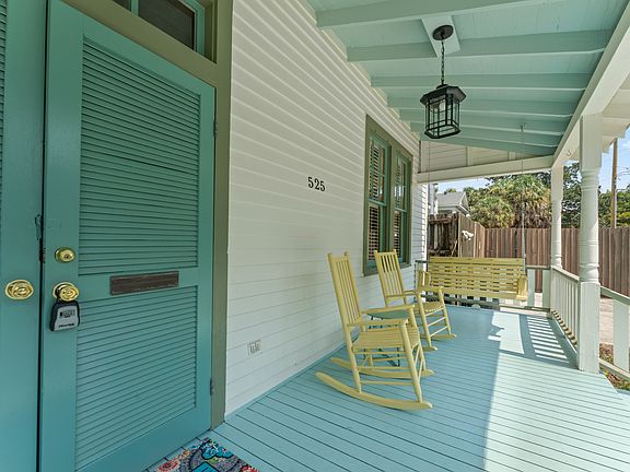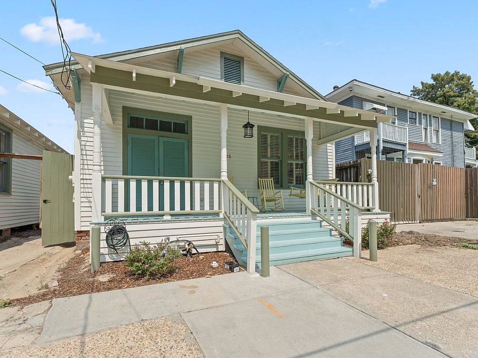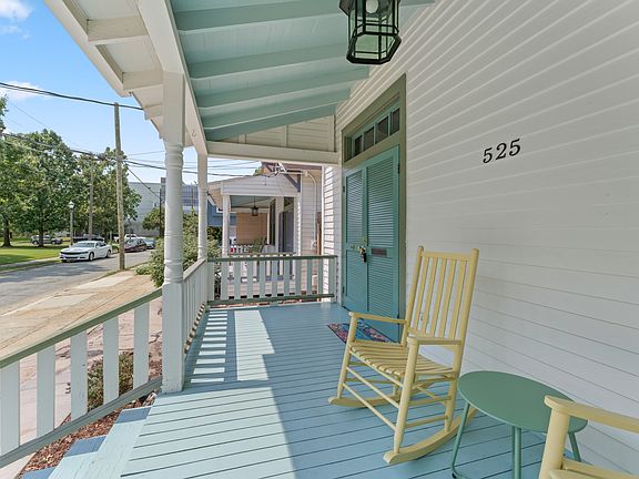 This beautifully renovated 3-bedroom, 1-bath home offers 1,228 sq ft of living space with timeless appeal and thoughtful updates. The inviting white exterior with teal-green shutters opens to a 153 sq ft front porch, complete with rocking chairs and a swing, creating a warm and welcoming first impression.