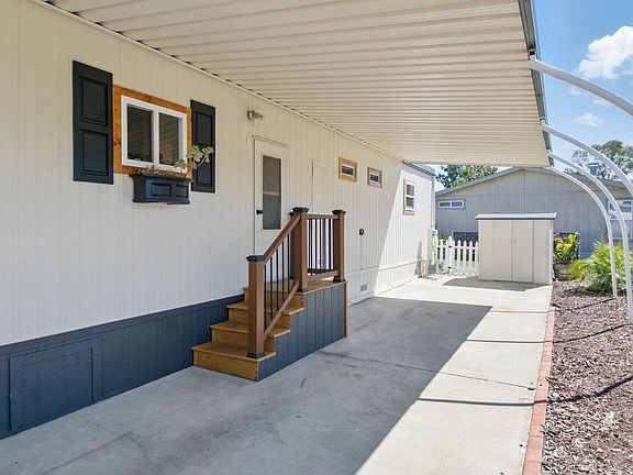 Welcome to the Highly Desirable Double Wide 55+ Home in Rancho Escondido. This home boasts two spacious bedrooms, including an oversized master bedroom with a large walk-in closet and a beautifully upgraded master bathroom featuring a walk-in shower. The guest bedroom is equally spacious and is complemented by a modern upgraded guest bathroom. The home's kitchen is a chef's dream with stainless steel appliances, tile backsplash, freshly painted cabinets, and unique wood countertops. The master bedroom space extends outdoors with a large backyard, a spacious sunroom, and a covered patio area, perfect for entertaining or simply enjoying the California sunshine. The property also includes a 2-car tandem driveway, a covered carport, and an additional storage shed. The home is equipped with a mini-split heating and AC system and includes a washer and dryer. The community offers a variety of amenities such as a community room, game room, and pool area. The meticulous low-maintenance landscaping design and large open turf area add to the home's appeal. Enjoy the security and peace of mind provided by living in a gated community. This home is a perfect blend of comfort, style, and convenience.