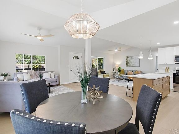 Turnkey two bedroom and two bath house in Rancho Escondido. The open floor plan and vaulted ceilings make this home feel very spacious. The kitchen has wonderful two tone cabinets, quartz countertops, a center island, a single basin sink, and stainless steel appliances. The home has been drywalled throughout as well as plank vinyl flooring in the main living areas. The primary bathroom has a dual vanity with quartz counter tops and a beautiful walk-in tiled shower. A new HVAC system and vinyl dual-pane windows will keep this home comfortable. The home has a new roof. There is a shed to store your extra items. The home has a 433A foundation. Rancho Escondido is a 5 star 55+ gated resident owned community in North County with a very active social community, a beautiful clubhouse, two pools, and a spa. Own your own land & home! No space rent! The HOA is only $302 and includes water, sewer, trash, basic cable, and common grounds.