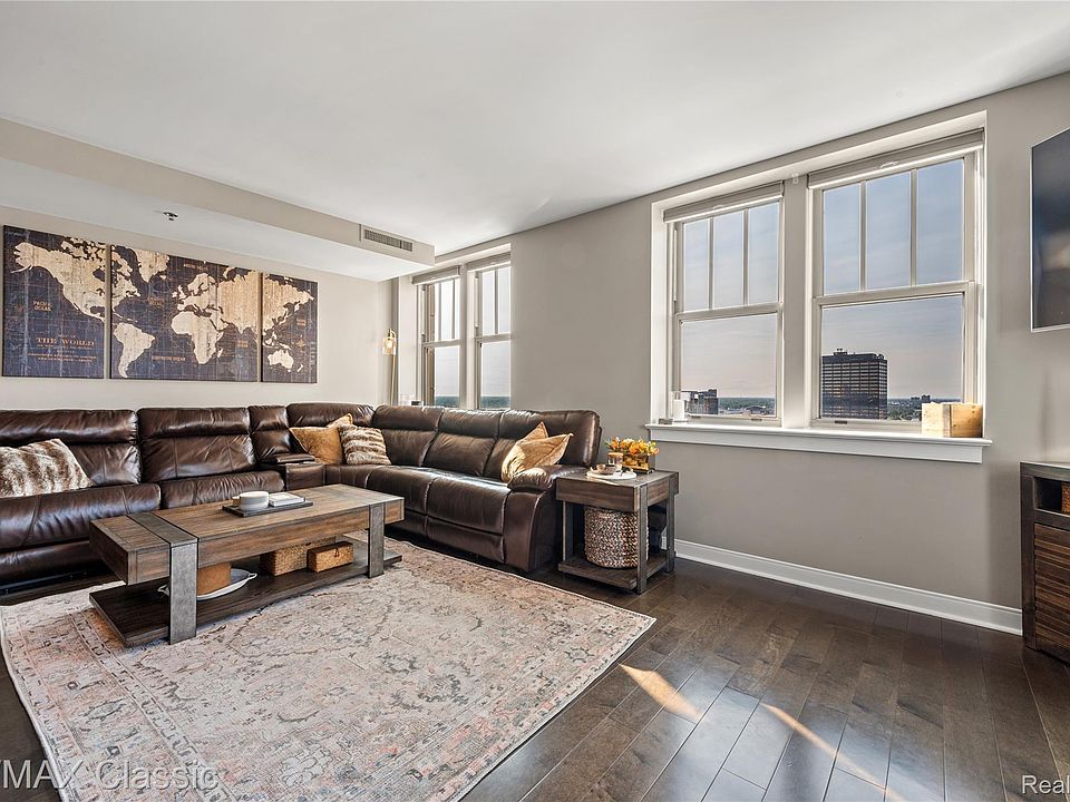 Experience unparalleled luxury in this stunning, brand-new corner unit, the only one of its kind in the building. As you step inside this northeastly-facing residence, prepare to be captivated by breathtaking views of the Detroit's sky line. The interior is a masterpiece of design, featuring a top-tier finish package that includes gleaming hardwood floors, quartz countertops, and stainless-steel appliances in the kitchen. Both bathrooms are elegantly appointed with stone tiling and granite counters, offering a spa-like retreat.