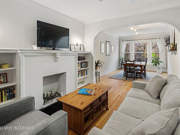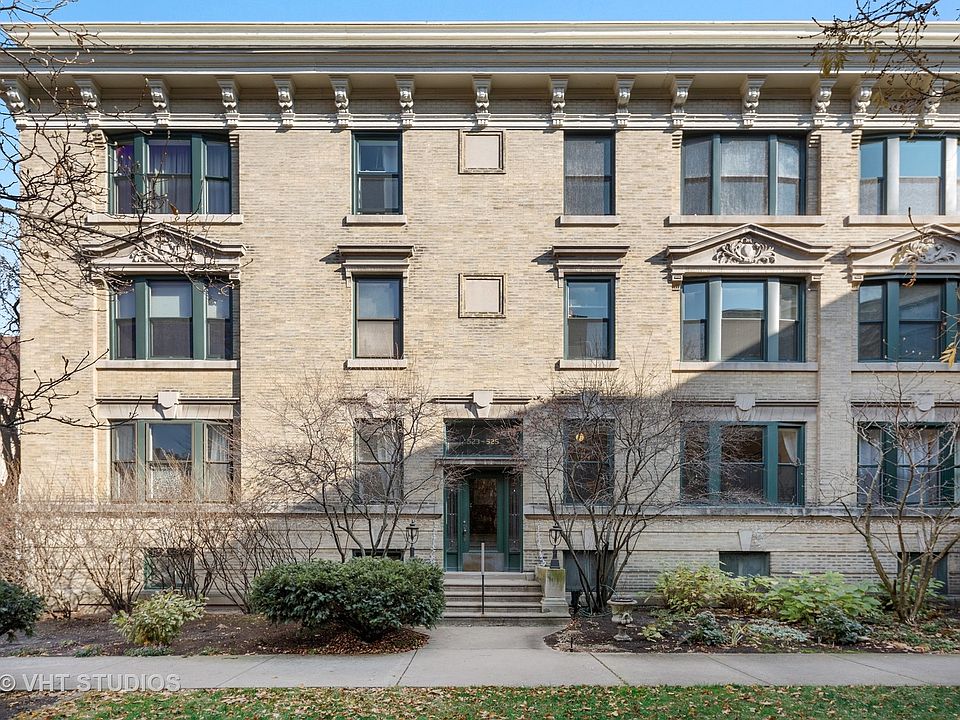 Incredible 2 bed, 1 bath unit bursting with tons of character and charm! Located in a classic vintage courtyard building in sought-after East Lakeview; this home offers a split floor-plan with a sprawling layout! The spacious kitchen was designed with a cook in mind with plenty cabinetry and stainless steel appliances. Dinner is served in a large separate dining area that overlooks the gorgeous courtyard. Additional elements adding to the character and warmth of the condo are the two large bedrooms, high ceilings, crown molding, original hardwood floors and fireplace built-ins. Full size stackable washer/dryer and additional storage included. Steps to the lakefront, public transportation, shops, restaurants, Wrigley Field, and nightlife! Convenient to express bus to downtown. Don't miss this amazing condo!