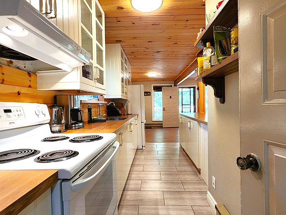 Dbl detached garageHouse-wide front composite deckHot tubCedar sidingMetal roofOpen concept rustic designWood beams