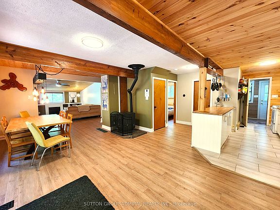 Detached home w/ thousands in recent upgrades right in the heart of Lake Nipissing fishing community, this 1.5 storey home w/ dbl detached garage on over 2 acres across from the Lake. Exuding rustic vibes as you drive in, the home is complemented by a 2020 built house-wide front composite deck, Massive deck in the rear w/ a hot tub, cedar siding, metal roof, and trees everywhere - Features 4 bedrooms, 2 baths, open concept rustic design with wood beams, and pine ceilings. The basement is unfinished, and left to your creative finishings but features a spare room, a large laundry room/walkout to the back yard, and utility room with ample storage. The double garage and driveway can help store all your toys w/ a workshop at the back. Backyard is private, plenty of room for a firepit, for a dog to run, or a garden.