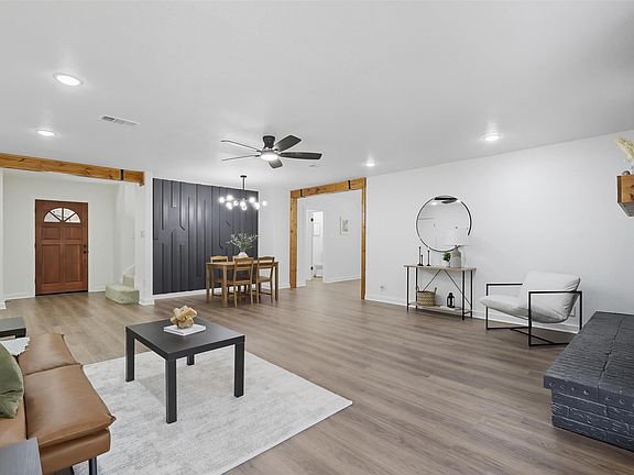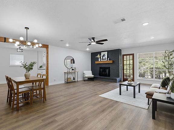 Country Living just minutes from the city! Enjoy quiet country living on this 2.99 acre, 5 bedroom, 3.5 bath, 2728 square foot home. This fully remodeled home includes a downstairs primary bedroom with ensuite bathroom, a large living room, and bonus common space. Granite counters in the kitchen and all bathrooms, along with black accents gives a modern twist to this spacious home. Upstairs is a teenager's dream space, or make it a secondary primary bedroom. With its own living area, this living space will be the one everyone in the family desires. From the spacious covered back porch, you will look over your beautiful acreage and horse barn surrounded with mature oak trees. An ideal living environment to escape the chaos of a busy life.