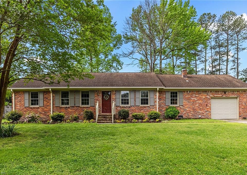 Located in the established Great Bridge Gardens neighborhood in the heart of Great Bridge in southern Chesapeake. Lovingly cared for by the original owners, this spacious all brick Ranch has great curb appeal and offers lots of potential! Situated on a large .30 acre lot, this Gem boasts a convenient location with easy access to shopping, dining, and interstates. Highlights of this Home include a newer HVAC system, architectural shingle roof, Primary Suite with full bath and large closet, Kitchen opens to the Family Room with wood burning Fireplace, Formal Living and Dining Rooms, spacious secondary bedrooms with overhead lighting, 4th Bedroom is the Finished Room over the Garage, original hardwood floors, oversized 1 car attached garage with opener, gutters and downspouts, and more! Attends Butts Road Primary and Intermediate schools, and Great Bridge Middle and High Schools.