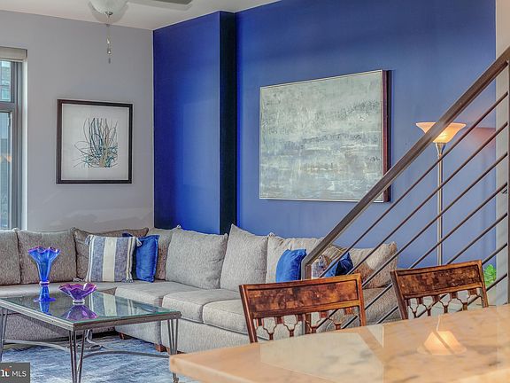 Welcome to Penthouse 403 at 525 Water, an extraordinary two-level condominium in the heart of the Southwest Waterfront. This rare residence offers high ceilings, custom upgrades, two garage parking spaces and a seamless blend of modern comfort and timeless sophistication, all just moments from the energy of The Wharf. Adding to its appeal, Penthouse 403 includes two secure garage parking spaces and an oversized storage unit, an amenity rarely available in the building and highly sought after in city living. The main level opens with ten-foot ceilings and a light-filled living and dining area anchored by a custom-built entertainment center with black granite detailing, a sleek quartzite-topped desk, and a matching full-length display shelf. The gourmet kitchen is both striking and functional, with custom oversized cabinetry and an upgraded, larger island, built-in pantry storage with pull-out shelving, white quartzite countertops, a designer full-height backsplash, and upgraded Electrolux Icon appliances. An InSinkErator instant hot water system and upgraded disposal elevate everyday living, while a private balcony extends the entertaining space outdoors. Completing this level is a spacious bedroom with adjustable closet shelving, and a built-in safe, paired with a beautifully appointed bath featuring white marble shower walls with designer accents, Porcelanosa flooring, granite surfaces, and custom cabinetry with integrated linen storage. Ascending the staircase, the upper-level features soaring eleven-foot ceilings and a dramatic primary suite. This retreat is enhanced by a custom wardrobe and shoe cabinet with granite accents, a dedicated dressing area with large mirrors and integrated lighting, and refined details such as track lighting, a ceiling fan, and exposed spiral ductwork that add a modern edge. The en-suite primary bath is finished with spa-like precision, offering white marble walls and wainscoting, water jet cut stone flooring, a granite vanity with a matching shelf, and a luxurious shower with dual shower heads, a built-in seat and shelving. Beyond the interiors, the residence offers private outdoor living with an expansive terrace designed for al fresco dining and entertaining, complete with a rare gas line for grilling or firepits. Additional thoughtful touches include a custom laundry room with a full-size Electrolux washer and ducted dryer, porcelain tile floors, adjustable shelving, and automatic lighting. Throughout the home, dimmable light fixtures, custom storage solutions, and high-end finishes reflect the attention to detail that defines this one-of-a-kind property. Perfectly positioned within 525 Water, this penthouse places you at the The Wharf’s dynamic waterfront, with premier dining, boutique shopping, entertainment venues, and tranquil green spaces just outside your door. With its expansive layout, bespoke upgrades, and private outdoor terrace, Penthouse 403 represents the pinnacle of waterfront living in Washington, DC.