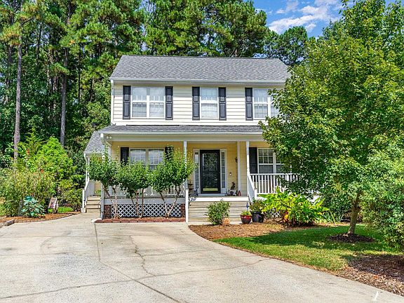 525 Wheeling Circle is a beautiful 3br/2.5 bath home located in popular South Durham area. This is a one owner home that has been well loved by this family. Situated on a lovely wooded .44 acre lot at the end of a cul de sac, the front of house features a gorgeous rocking chair porch great for unwinding after a long day. The backyard features a new patio and jacuzzi. Also, the yard is partially fenced for your pets but there is still plenty of room for your firepit and trampoline. There is also 2 large sheds for storage. Inside you will find a spacious family room, traditional dining room, kitchen with brand new counter tops and a breakfast nook that overlooks fantastic Carolina pines. Upstairs is the gracious Master suite with a garden tub, walk in shower and double vanity. Down the hall there to 2 more bedrooms and another full bath. 525 Wheeling Circle is truly a turn key, must see home. Don't miss it.