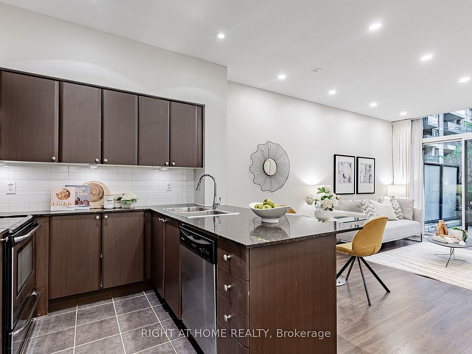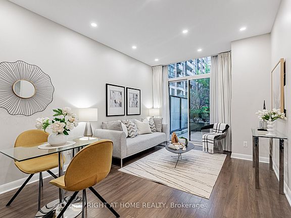 Welcome to the Gramercy Park Lifestyle, just steps away from Wilson Subway Station. This unique 1 Bedroom + Large Den + a coveted, expansive Terrace unit on the ground floor is a rare gem. The unit is spacious & bright with a very functional layout and no wasted space. (Unit ~659 sqft + Terrace / Patio ~220 sqft). The very usable terrace overlooks a private & serene courtyard/ gardens and is perfect for entertaining guests outdoors. This unit is located in the quieter part of the building, with easy access to Wilson Ave and transit without needing to use an elevator or to exit through the lobby. The soaring 9 feet ceilings, large glass doors / windows and the coveted south exposure floods the unit with natural light! The primary bedroom has ample storage, more floor to ceiling windows and enough space for a large bed + office desk. The den can be a dedicated office space or it can do double duty as a guest bedroom with a double bed. The kitchen has a lot of cabinet space for storage, full size Stainless Steel Appliances, a Granite Countertop and a space saving Breakfast Bar. This turnkey unit is freshly painted and comes with pot lights galore! Gramercy Park is served by multiple bus routes, the subway and is just minutes from Yorkdale, Costco and lots more shopping along with easy access to Hwy 401 and Allen Rd.