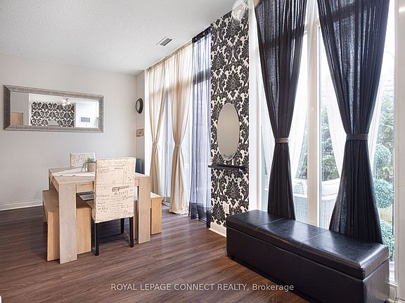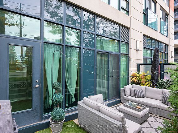 Rare Live/Work Sun filled, west facing ground floor unit. 9ft ceilings, floor to ceiling windows, w/lots of natural light. 2 walkouts to large private terrace. Perfect for pet owners, or anyone looking to run a small business and want direct street level access. Formerly used as a salon. Zoned for small business (limited). Upgraded flooring throughout, enlarged 5piece washroom with two marble sinks. Ceiling light rough ins in bedroom, living room, kitchen and den. Window coverings and light fixtures included. Granite kitchen counter, S/S appliances. Extra storage space in washroom. Gorgeous large patio w/ walkout to street. Steps to TTC station, 24h grocery, close to hwy 401 and Allen rd. Costco, shopping centers, Yorkdale mall, restaurants, schools, and parks, all just minutes away.