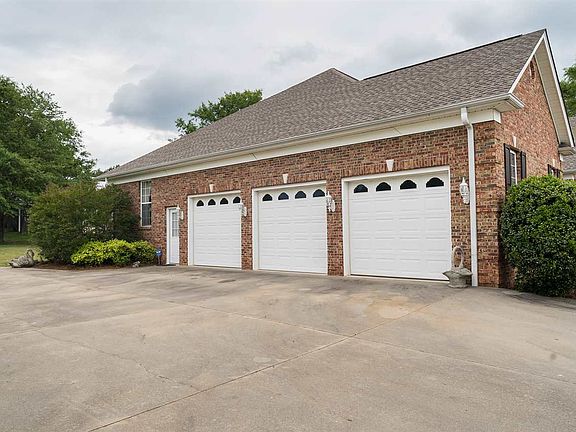 Custom built, brick home with over 3500 Square feet on one level. This stunning, open floor plan features soaring ceilings, detailed molding, and hardwood floors. Great room has a gas log fireplace. The eat-in kitchen has a huge island and an abundance of cabinet space with pull out shelves, pantry, double ovens, and granite countertops. Entertain in the large breakfast area or formal dining room. Work from home in your own private office or living area. The master suite has a jetted tub, separate shower, and a walk-in closet. All bedrooms have walk-in closets. The in-law suite has its own private bath and is located on the opposite side of the house. Alarm, central vac, and irrigation! 44x60 detached garage/workshop with RV cover attached. House also has an attached 3 car garage.