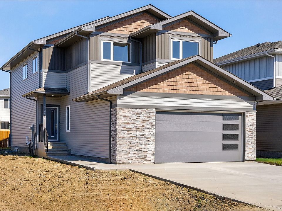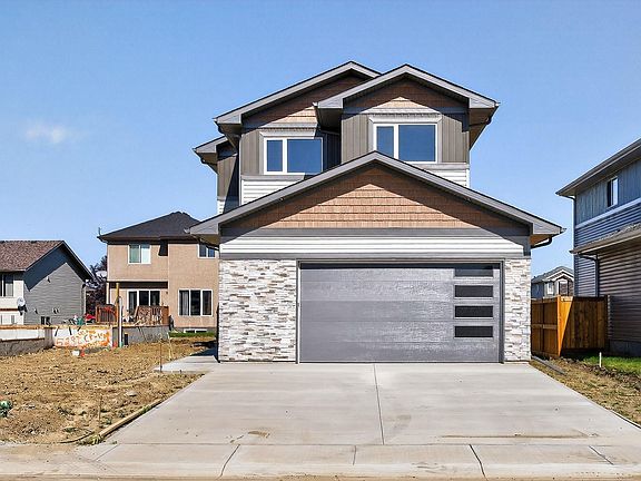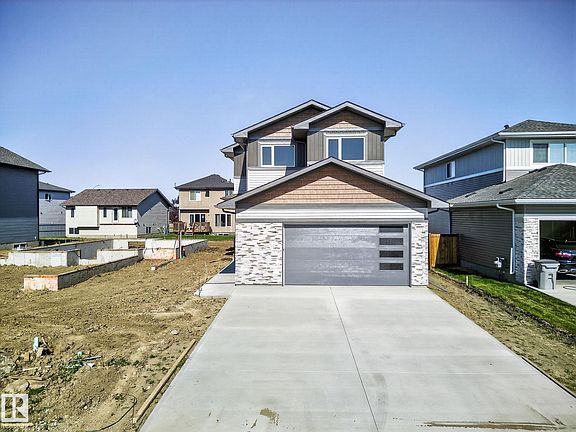 Discover over 1900 sq ft of luxurious living space nestled in the highly desirable community of Southbridge in Calmar! This stunning two-storey home features upgraded finishes, 3 spacious bedrooms, soaring OPEN-TO-BELOW living room ceilings, 9' kitchen ceilings, sleek QUARTZ countertops, AMPLE CABINETRY, STAINLESS STEEL APPLIANCES, a WALK-THROUGH PANTRY AND BUILT IN SHELVING THROUGHOUT. This OPEN-CONCEPT layout and cozy fireplace perfectly blend relaxation and entertainment. A versatile flex room can even be transformed into a 4th bedroom if desired. The primary bedroom offers a luxurious 4-PIECE ENSUITE with a private enclosed toilet area & modern shower which flows seamlessly into a WALK-IN CLOSET to get ready with ease. A 2nd FULL upstairs bathroom and laundry room adds convenience. The EXTENDED DOUBLE GARAGE is practically designed roughed-in for a future garage heater and includes a hose bib. Conveniently located near the airport, Leduc, Devon & is in walking distance to expansive park-like settings!