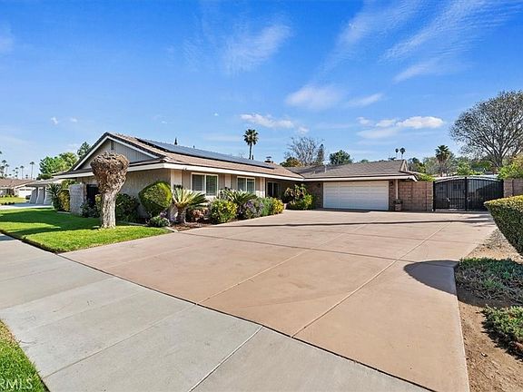 Nestled in the prestigious and highly sought after neighborhood of Canyon Crest, this beautiful 3 bedroom, 2 bathroom single-family home sits on an expansive 11000+ SqFt corner lot. With 1806 SqFt of living space, this home has been upgraded and meticulously maintained by the current owners with pride of ownership over the past 47 years! Walk into a beautifully remodeled kitchen featuring quartz countertops, six burner range and stainless steel double oven, and pantry. The large island includes its own sink, refrigerator drawer and a warming drawer making it perfect for entertaining. The open family room boast custom built in storage and a cozy fireplace. The dedicated built in office space adds convenience. Beautiful hardwood floors flow throughout the home (except in bathrooms). The spacious primary bedroom offers a cozy retreat with warm natural light and elegant wood flooring. The en-suite bathroom boasts a dual vanity with rich wood cabinetry and a beautiful tiled walk in shower. The additional bedrooms offer versatility and charm, each featuring ample natural light, a ceiling fan and plenty of space. The secondary bathroom is thoughtfully designed with classic cabinetry and generous storage. The paved backyard features a built-in BBQ, two storage sheds, and fruit trees. Home also features a large driveway with ample parking and a side gate for easy access to the backyard. Additional home improvements include a tankless water heater, water softener, paid solar panels, window shutters and attic insulation for energy efficiency. Prime location near top-rated schools, Canyon Crest Town Center, scenic trails at Sycamore Wilderness Park, and Andulka Park with ample recreational amenities. Canyon Crest Country Club is nearby for golfers. Quick access to UC Riverside, Downtown Riverside, and the 91 & 60 Freeways add to the convenience. Don't miss this rare opportunity in Canyon Crest!