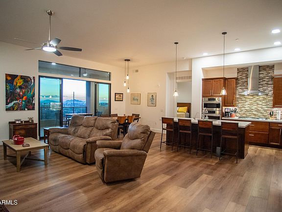 Check out these stunning views! This penthouse-level condo in The Luxe at Toscana is move-in ready, boasting incredible features throughout. Step inside to discover an open living layout with breathtaking south-facing sunsets. The gourmet kitchen is a chef's dream, featuring quartz countertops, Bosch and LG appliances, and ample storage space. Adjacent to the living room is a large balcony perfect for outdoor lounging and dining, complete with a built-in BBQ grill. The spacious primary bedroom offers another entrance to the balcony, showcasing more of those stunning views. The primary bathroom features a tiled walk-in shower, dual sinks, and a spacious walk-in closet. The second bedroom includes a full en suite bathroom and an additional walk-in closet for even more storage. This community offers all the amenities you could ask for and is conveniently near the AZ-101 and AZ-51 for easy commuting, as well as Desert Ridge for shopping, dining, and entertainment. Plus this community is just minutes from the world class Mayo Clinic Hospital! See the full list of features and upgrades!