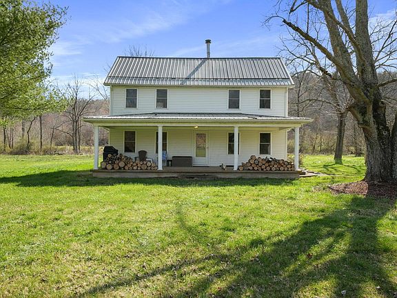 INCREDIBLE OPPORTUNITY! Originally crafted as a log cabin, this beautifully renovated 2-story home features 3 spacious bedrooms and 1 bathroom. Flooded with natural light, the home is situated on 75 acres of prime hunting land, divided into 3 parcels. The property includes 6 acres of food plots, a 1-acre stocked pond, an orchard, and a serene creek that flows through the backyard, making it a nature lover's dream. Since 2012, the land has been meticulously managed for white-tailed deer and turkey, ensuring a thriving wildlife habitat. Additional amenities include a 24x32 garage with a loft, complete with a kitchen and full bathroom added in 2013, and a 24x24 storage shed built in 2018. This turnkey haven is ready for your immediate enjoyment.