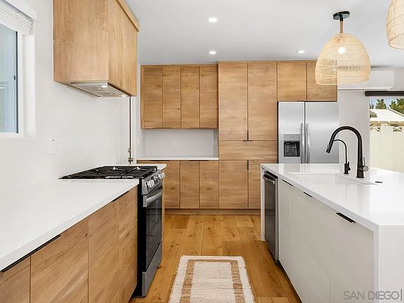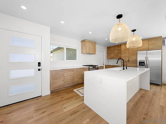 Welcome home to this beautifully renovated, custom designed light and bright three bedroom, two bathroom home with chefs kitchen. Upgrades include new luxury vinyl flooring throughout, fireplace, new upgraded appliances, new roof, new dual pane windows, RV / boat parking, new electric and plumbing. There is ample parking with your finished two car garage, additional driveway space and room for RV / boat parking! Additional features include: LED lighting, new waterproof acrylic stucco, low maintenance landscaping, fully fenced corner lot with a large yard, and outdoor sitting areas. Located close to UTC, beaches, restaurants, shopping, and easy access to 52, 5, 805 & 163 freeways make this centrally located turn key home a must see!