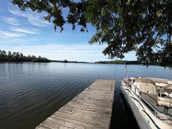 This is a Janisch Realty Property! For more information call (218) 780-6644 or visit www.janischrealty.comSecluded Lake Vermilion Log Cabin Retreat W/Old Fashioned Encl Front Porch, Panoramic Island Studded Views, Set On 200 Ft South Facing Pebble Shoreline, located off well maintained Mud Creek Rd between Tower & Ely, just mile paddle to BWCA. 825 SF, 2 BR, modern kitchen & full bath. Vaulted ceiling, wlkout foundation for storage, maintenance-free metal roof. Kitchen, living & dining w/wrap around windows open to view, lake breezes, loon calls. One level retreat w/gradual slope to dock, open area for activities/firepit at waters edge. Room to build garage. Pick blueberries off your hillside, relax & watch eagles from your livingroom or catch Walleyes right off your dock!
