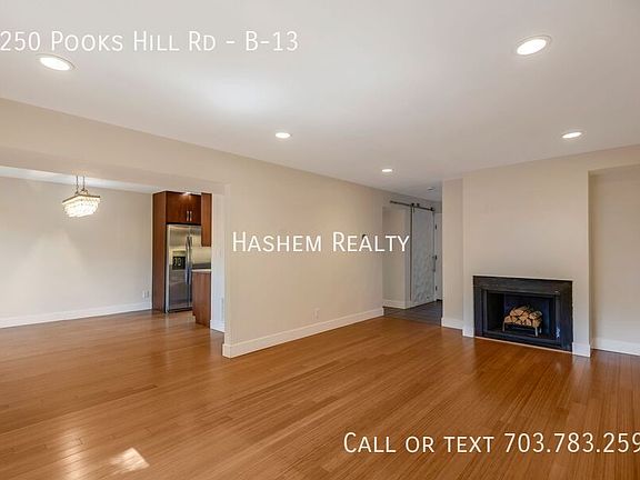 Welcome to 5250 Pooks Hill Rd #B-13, a beautifully maintained 3-bedroom, 2.5-bath townhome located in the highly sought-after Pooks Hill Square community of Bethesda. This spacious and light-filled home offers approximately 2,400 square feet of comfortable living space across three levels. The main floor features hardwood flooring, an inviting living room with a cozy fireplace, built-in bookcases, and charming exposed brick accents. The updated kitchen is equipped with stainless steel appliances, ample cabinetry, and a bright dining area perfect for everyday meals or entertaining. Upstairs, you'll find three generously sized bedrooms including a primary suite with a private bath and excellent closet space. The finished lower level offers a large bonus room ideal for a home office, playroom, or secondary lounge area, and opens out to a private fenced-in patioperfect for relaxing or enjoying outdoor gatherings. Additional features include fresh paint throughout, two enclosed outdoor spaces (front and back), and one assigned parking space. Conveniently located just minutes from downtown Bethesda, major commuter routes, Metro stations, NIH, and Walter Reed, this home provides the perfect blend of space, comfort, and accessibility in one of the area's top school districts. Don't miss the opportunity to live in this charming and quiet neighborhood with everything you need right at your fingertips!