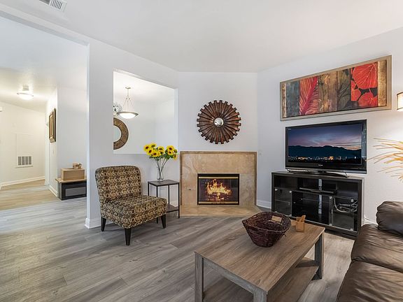 Discover the perfect blend of comfort and luxury in this stunning furnished 3-bedroom, 2-bathroom upstairs condominium located in the highly desirable Spanish Palmsguard-gated community. Step into the modern kitchen, where you will find elegant quartz countertops, sleek stainless-steel appliances, and stylish new cabinets, making meal prep a delight. Unwind in the inviting living room, featuring a cozy fireplace that sets the stage for relaxing evenings at home. The primary bedroom is a true retreat, complete with a ceiling fan, a walk-in closet, and plush new carpeting for added comfort. The ensuite bathroom has been tastefully upgraded with a contemporary shower, new cabinetry, and travertine flooring. Enjoy the convenience of a 2-car garage with direct access to your home. With easy access to the 215 freeway, Harry Reid Airport, and shopping. Take advantage of the fantastic community amenities, which include refreshing pools, relaxing spas, a lovely park, and weight room.