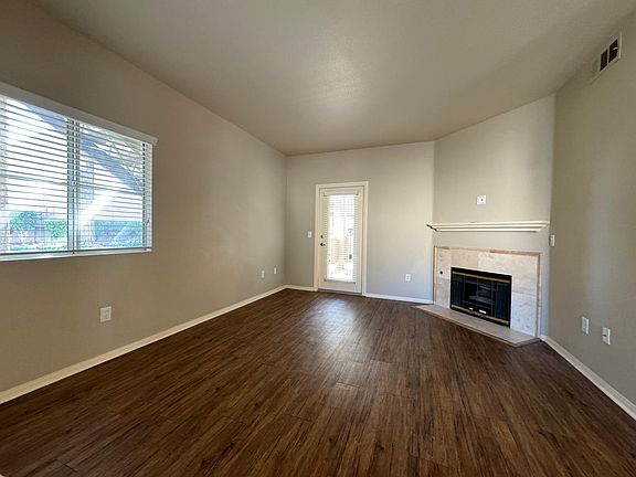 1ST FLOOR CONDO WITH ATTACHED 1-CAR GARAGE IN GUARD-GATED SPANISH PALMS. This first floor (ground level) condo features 1 Bedroom /1 Bath with a nice open floorpan including a gas fireplace in the living room. Wood-style flooring in main living areas. Stainless steel appliances and granite countertops in kitchen. All windows have blinds. Condo has its own washer/dryer. Ceiling fans in owner's bedroom and dining room. Unit is next to green belt and close to pools and amenities. Community has plenty of greenery, mature trees, parks and walking trails. Resort style pool and clubhouse with business center, fitness room and kitchen (great for parties and entertaining guests). Convenient to shopping, dining and I-215 Expressway access just a few minutes away.