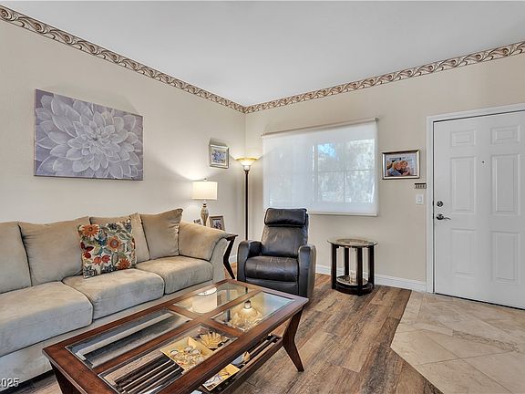 Move-in ready and fully furnished 3-bed, 2-bath upper-level corner unit in the desirable guard-gated Spanish Palms community—sold as-is with everything included. This beautifully upgraded home features new luxury vinyl flooring, premium travertine tile, granite countertops, gas fireplace, and fully remodeled bathrooms, including a glass walk-in shower in the primary suite. Includes lightly used KitchenAid stainless steel appliances, DeLonghi espresso machine, TVs, and all electric appliances. Also comes with all furniture, décor, high-end European bedding, comforters, towels, and kitchen essentials. Accessibility enhanced by an EasyLift stairlift. Enjoy an epoxy-coated 2-car garage, in-unit laundry, private balcony, and resort-style amenities: pool, spa, gym, clubhouse, BBQ areas, and dog park. Minutes to the 215, shopping, dining, and the Strip.