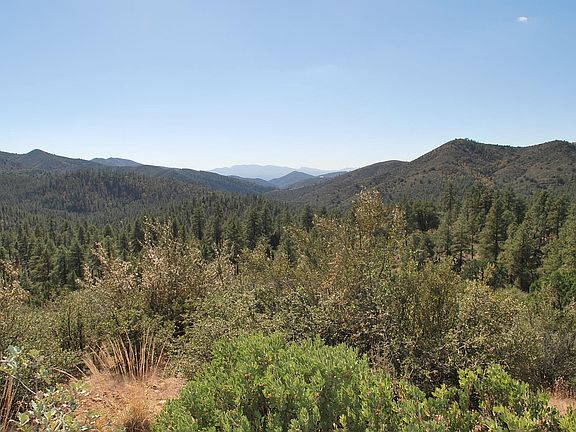Absolutely gorgeous pine property that has good improved access, privacy, usable land, borders National Forest on two sides and tremendous views of the Bradshaw Mtns. and Prescott National Forest. Two structures are included. One an unfinished shell A frame (21x36') and the other a usable metal garage (24.5 x 41') plus a small ''bunkhouse''. All improvements are left as is and where is. Mineral rights convey with this land. Can be split by the new owner. Good wells on adjoining properties. This is really nice property away from it all but not to far away. Sweeping views of Mt. Union, Mt Tritle, Maverick Mtn., Mt. Francis and the Wolf Creek and Hassayampa drainage.
