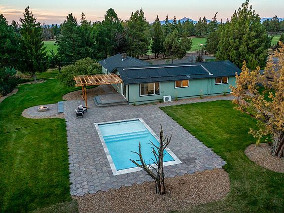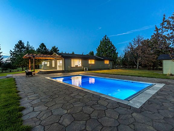 Your Rural Oasis Awaits! Located in SW Redmond, minutes from town, on 4.55 acres with 2.69 acres of COID irrigation water rights - This STUNNING, elegant, ranch home, complete with a welcoming, serene water feature, wood burning fireplace, and a new inground solar-heated pool is MOVE IN READY. Sparkling and bright, you'll first notice the upgraded, luxury finishes throughout the home, including new flooring, cabinets, countertops, appliances, and fixtures - the kitchen and bathrooms you've always wanted with quartz, tile backsplashes, soft close drawers and doors, and gorgeous plumbing trim. Property boasts sheds and stalls for animal needs, irrigated pasture, a pond and inground irrigation system. Truly something for everyone with the gorgeous home, fresh epoxy flooring in the attached double car garage, spacious private & peaceful setting, and the perfect outdoor and entertainment space with the pool surrounded by patio pavers and auto cover for ease of maintenance. *PERFECT STR.