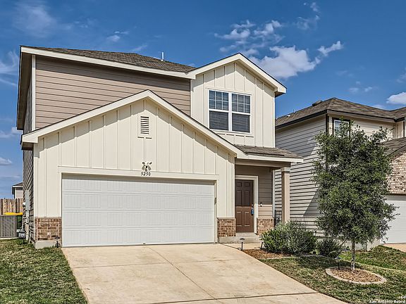 Beautiful 3-bedroom, 2.5 bathroom two-story home built in 2022 in rural Saint Hedwig, TX. No city taxes! Features an open layout, 2-car garage, privacy fence, and private upstairs primary bedroom. Washer, dryer, and refrigerator will convey with the sale. This property also features a front and backyard Wi-Fi-controlled sprinkler system. Just minutes from Randolph AFB and Fort Sam Houston. Ideal for military families or first-time buyers. Move-in ready and priced to sell. Don't miss this one!