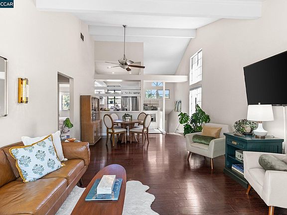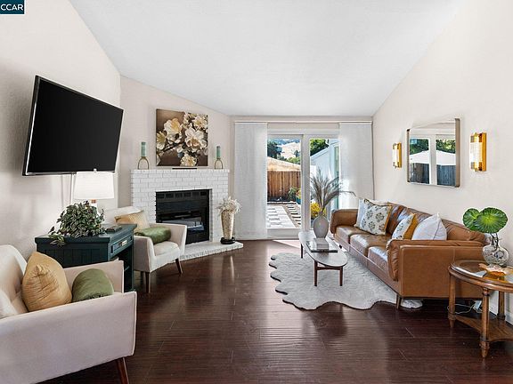 Welcome to this charming Concord duet that backs to serene open space with bonus studio. You will find that the great room is the heart of the home and features high ceilings, an electric fireplace nestled in stylish white brick, an abundance of natural light, a casual dining area, and sliding glass doors to the backyard for desirable indoor-outdoor flow. The remodeled kitchen will meet your culinary expectations and comes equipped with stainless steel appliances, deep farmhouse sink, five-burner stove and ample storage space. Decorate the window shelves with herbs, indoor plants and your favorite treasures! The primary suite is a true haven, showcasing its own sliding doors to the backyard and a private ensuite for added convenience. Additional highlights of the home include a second bedroom, a remodeled hall bathroom with a tub-shower combo, and a dedicated laundry room that connects to the two-car garage, ensuring all your needs are met. Step out to the backyard featuring a spacious patio and picturesque views of the rolling hills. The detached approx 100sq ft studio with a mini-split provides the ideal spot for remote work and creative projects. Located close to downtown Clayton, Lime Ridge Open Space, Mt Diablo, Concord Pavilion, parks and top-rated schools.