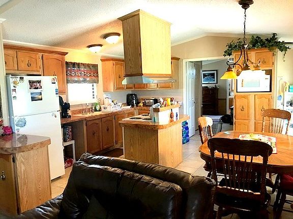 Home is a 1986 Redman single wide 16' X 76' manufactured home. Home features vinyl no paint siding, tile and carpet flooring, plantation shutters, vaulted ceilings and update baths. It has a covered front porch entry with carport parking, a covered back patio and a storage building. Nice walkway out to the dock. Also has a newly installed storm cellar. Gated entry to property off county rd.