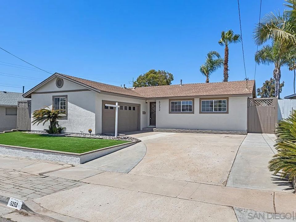 Priced to sell! Beautifully remodeled, single level home on a coveted Mount Street; this one has it all! Step into the open floor plan interior that allows highly functional living; with remodeled kitchen with lots of cabinets and counter space, quartz tops, custom backsplash and new Smart appliances, and 42" bar height counter for eat up dining, is perfect for entertaining. Living area also features a custom tiled fireplace ready for TV, LVP flooring throughout. Nicely appointed remodeled bathrooms with custom tile and white oak vanities. Enjoy San Diego living on the outside of this home featuring large front and rear yards, well manicured, low maintenance landscaping with LOTS of synthetic turf, and large patio for family gatherings. Some other recent upgrades include: new ABS plumbing, quality plumbing and electrical finishes, new doors, baseboards, casing, painting inside and out, new FAU & Mini split AC Condenser, and so much more! The home is located in a central neighborhood in San Diego with easy access to freeways, beaches, parks, hiking, dining, and entertainment, making it perfect for those who enjoy an active lifestyle.