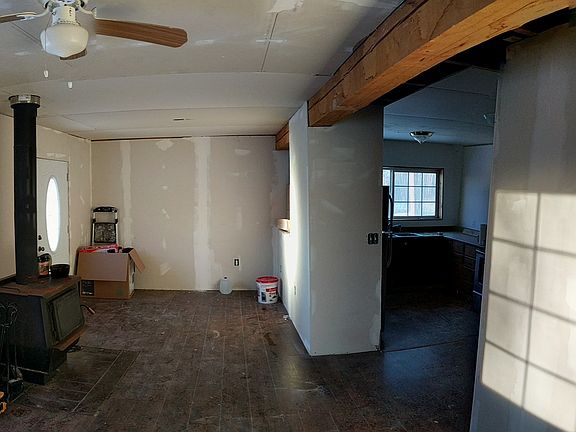 2bdr 1 bth home under construction. Toyostove heat and wood stove for back up. Also has large storage shed and yard. Will consider owner financing with 25%down 0%interest. Contact Guy
