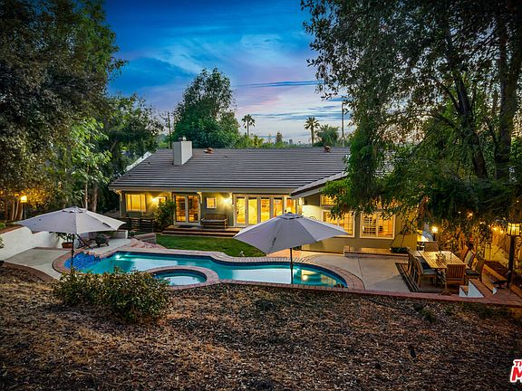 Now offered at a significantly reduced price, 5252 Vanalden Ave is an incredible value for this one-of-a-kind Tarzana retreat filled with charm, character, and endless possibilities. This stunning California Ranch-style home with a Spanish tile roof features 4 bedrooms, 3.5 bathrooms, and 2,768 sq ft of warm, welcoming living space on a sprawling 19,218 sq ft lot. Behind the gated front yard, you'll find a perfect grassy play area for kids and pets. Enter through the inviting front porchpast the peaceful fishpondand step into a dramatic great room with soaring cathedral ceilings and gleaming wood floors. The open kitchen and family room, complete with a fireplace and custom built-ins, create the heart of the home. Storage is abundant throughout, with closets and built-ins making organization a breeze. The spacious primary suite offers a fireplace, French doors to the pool and spa, walk-in closet, soaking tub, and oversized shower. A front guest bedroom has its own ensuite bath, while two additional bedrooms share a Jack-and-Jill. A bonus office nook near the kitchen is perfect for Zoom calls or creative projects. The entertainer's backyard features a built-in BBQ and fridge, a sparkling pool, and a hillside path leading to a magical, oversized treehouse strung with lightsideal for sleepovers, playdates, or stargazing. Thoughtful upgrades like a whole-house fan, solar attic fans, double insulation, and energy-efficient systems keep the home cool and comfortable. The finished garage provides even more flexible space for a studio or home office. This home is bursting with potential, comfort, and a little bit of magicall at a new, more accessible price. Don't miss your chance to make it yours!