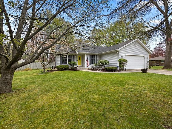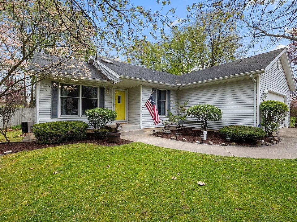 MULTIPLE OFFERS HAVE BEEN RECEIVED, OFFER DEADLINE 7 PM, APRIL 28TH! Not far from Notre Dame you'll find this beautiful 3 Bedroom, 2 bath ranch with full basement, and 2-car attached garage! This home and its peaceful half acre setting in Granger await you with a gorgeous backyard that is totally fenced in making it perfect for relaxing and entertaining! You'll love all the windows and natural light in the spacious vaulted Great room/Dining room! Kitchen comes with all appliances and features a large pantry, brand new floor and new ceiling fan. Retreat to the Primary Suite with full updated bath and walk-in closet. Main bath has been totally updated, too. Convenient Main floor laundry. A full basement is waiting for your finishing touches and is plumbed for a 3rd bath! Lovely Bamboo floors in Great room and hallway and wood laminate in bedrooms. Six panel doors throughout, new furnace in 2020, new water softener in 2019, and new well pump in 2018. Garage and patio feature epoxy floors. Sellers request 24 hour notice for showings due to young children!
