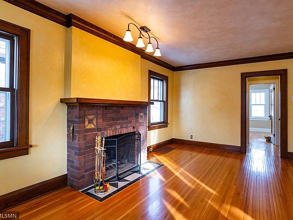 Amazing Nokomis East home of tremendous warmth and 1920s character that will wrap its arms around you! Perched slightly and facing west, it provides a pleasing presence from the street. Short stroll to Lake Nokomis. Along nearby 34th Avenue is every store and service you need plus coffee shops and restaurants. Well-located for schools and MSP airport. Feel welcomed by a lovely front porch with French windows. Enter the spacious living room and enjoy a wood-burning fireplace, hardwood floor, natural wood, ceiling crown molding. Craftsman arch leads to formal dining room with stunning, classic buffet. Efficiently configured kitchen has Silestone counters and space for a smaller table. Updated and upbeat main level bathroom incorporates vintage ceramic floor, subway tile, glass tile and glass block. Two delightful main level bedrooms with wood floors. Upstairs you'll discover a large, highly versatile room well-suited to serve as primary bedroom, studio, family room or home office - it's nice and sunny with two skylights and brand-new carpeting! Outstanding closets in this room. Generous flexible space in the basement as well: carpeted amusement room (fun pendant lights!), terrific three-quarter bathroom with subway tile in the shower, sewing room on the way to the laundry. Recently replaced furnace and central air! EZ to maintain stucco exterior. MAC soundproofing. Wonderful trees and perennial plantings within the completely fenced (front, side and back) yards, cute backyard patio. New garage roof. Come admire today!
