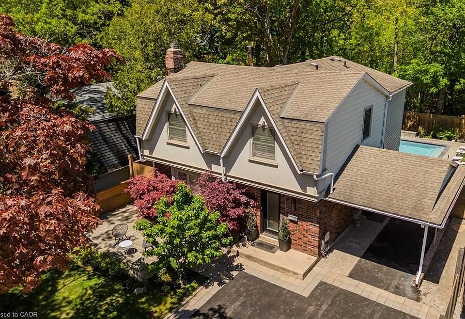 Welcome to your forever home, tucked away on a quiet family-friendly street, and backing on to a private wooded area, in one of Burlington's most desirable communities, Elizabeth Gardens. Just a short stroll to the lake, schools, parks, and the brand-new community centre, this beautifully updated home offers the perfect blend of lifestyle, location, and charm. From the moment you arrive, the pride of ownership is undeniable. The curb appeal is picture-perfect perennial gardens, mature trees, a stone terrace and newly paved extra-wide driveway with interlock border offering parking for up to 5 cars. Inside, you're greeted with a sun-filled, spacious home enhanced by hardwood floors, large windows and California shutters throughout. Open-concept living room with electric fireplace, and separate dining room complete with bay window for cozy nights and special occasions. Updated kitchen features soft-close cabinetry, quartz countertops, porcelain backsplash, stainless steel appliances, pantry, and island with breakfast bar. Step outside and escape to a true backyard Oasis, your own private retreat! The fully fenced backyard is lined with mature trees and boasts an interlock patio, gas BBQ hookup, and a heated saltwater pool with custom large steps and with an Aqua-link system to control lighting and heat temperature right from your phone. Upstairs, you will find 4 generous size bedrooms, the primary bedroom offering a walk-in closet, bay window and private 3pc ensuite with Corian countertops. Three additional bedrooms with deep closets, and a stylish 4pc main bath. The fully finished lower level adds even more function providing plenty of additional space with a large family room featuring a gas fireplace, an additional large bedroom with a walk-in closet, 2pc bath, separate laundry area and ample storage space. This warm, welcoming, move-in ready home