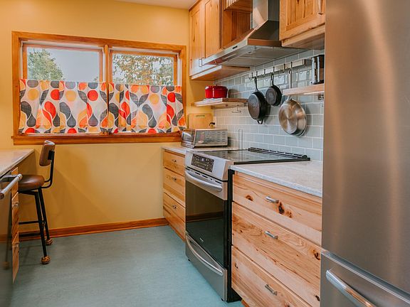 Character and charm abound in this well maintained Cape Cod in Shingle Creek. Large living area with wood floors, wood burning fireplace, filled with natural light. Updated kitchen with stainless steel appliances and ample storage space. Main floor bedroom and two bedrooms upstairs, including a primary bedroom with a balcony. Large deck overlooking the tree lined backyard. Patio between the house and detached garage. Home has been updated, including kitchen and bathroom updates, insulation, new roof, window wraps, new garage door. Property abuts Shingle Creek Trail, minutes to North Market, Webber Park Library and Webber Park Natural Pool.