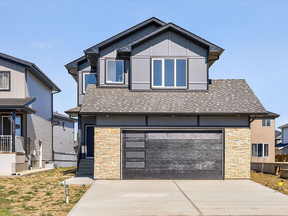 Experience this stunning two-storey home with over 1900 sq ft of living space in Southbridge, Calmar’s emerging community! Captivating OPEN-TO-BELOW living room ceilings provide a grand and bright atmosphere. 9' KITCHEN CEILINGS, chic QUARTZ countertops, STAINLESS STEEL APPLIANCES, timeless SHAKER cabinets, and a WALK-THROUGH PANTRY are also sure to impress. Unwind by a cozy fireplace or enjoy the versatility of a main-floor flex room - an ideal spot for a formal sitting area or studio. The upper floor offers a BONUS ROOM and 3 generously sized bedrooms. The luxurious primary retreat is complete with a walk-in closet and a beautifully designed ensuite featuring a 4-PIECE bath and modern shower. A second full bathroom and laundry room upstairs adds day-to-day practicality where needed most. The EXTENDED DOUBLE GARAGE includes a rough-in for a future garage heater and a hose bib maximizing functionality. Perfectly located near the airport, Leduc, Devon and is in walking distance to local sport fields!