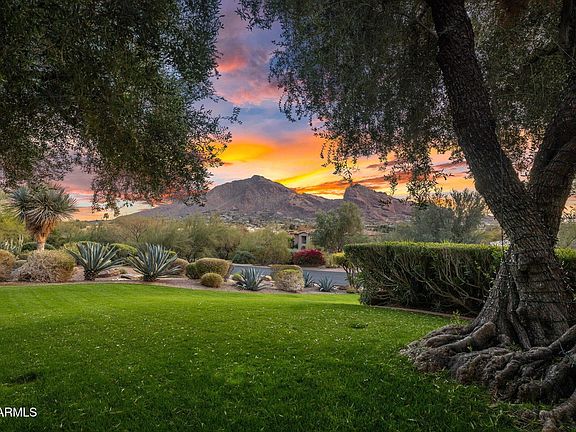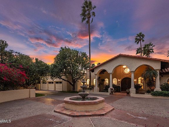 Step into this private retreat, perched on one of the highest lots on Mummy Mountain, and take in breathtaking, bird's-eye views of the valley. This stunning estate offers ultimate privacy, enhanced by meticulously curated landscaping that creates a true oasis. Enjoy uninterrupted, panoramic vistas of Camelback Mountain, stretching all the way to the twinkling city lights of Downtown Phoenix. Start your morning with coffee on one of four patios, and end the day by one of four fireplaces, admiring the spectacular Paradise Valley sunsets. The home's thoughtful layout includes five ensuite bedrooms and a split floor plan, with the primary suite extending the full length of the home. Whether you envision modern elegance or wish to preserve its timeless charm, this home is the perfect canvas to create the sanctuary of your dreams.