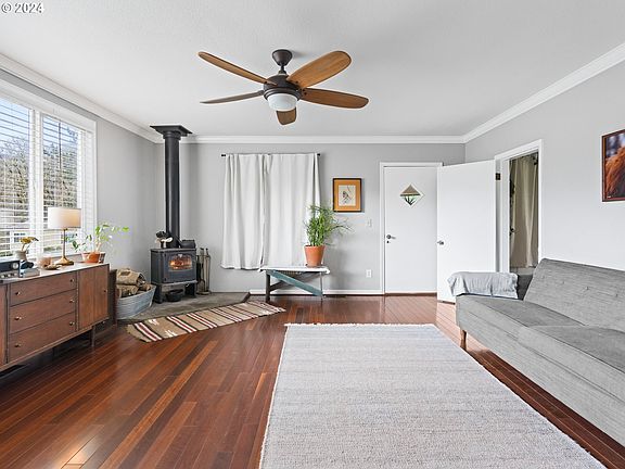 - Features: Ceiling Fan, Living Room Dining Room Combo, Wood Floors, Wood Stove