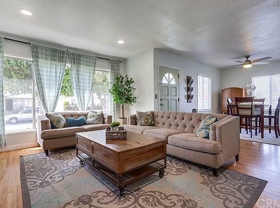 Beautiful landscaped home in the heart of Lakewood with original hardwood floors, including the cool vintage heater grate give this home a warm cozy feel while the newer forced air and heat bring it into the 21st century. The living room features recessed lights, large windows, natural light and is freshly painted for a clean comfortable feel. Off the living room there is a dining area with a ceiling fan, windows with wide blinds and is large enough for a table of eight. The kitchen has lots of cabinet space, natural light and a full laundry room with a storage cabinet. All three bedrooms are large with ceiling fans and one even includes an alcove for a vanity. The bathroom has plenty of room and includes a separate tub and shower. The backyard has privacy fencing all around, is large enough for a pool and is perfect for kids, parties or quiet evenings for two. There are two patio areas. One, with a fire ring, is tucked away in the corner for those quite evenings or small gatherings. The other goes from the house to garage and has plenty of room for that big party, toys, bbq, etc. There is also a second gated yard, great for a vegetable garden, kids play area or whatever. The two car garage has been drywalled and insulated with plenty of electrical outlets for your convenience. All this in the most desirable part of Lakewood, close to malls, schools, parks and freeways.