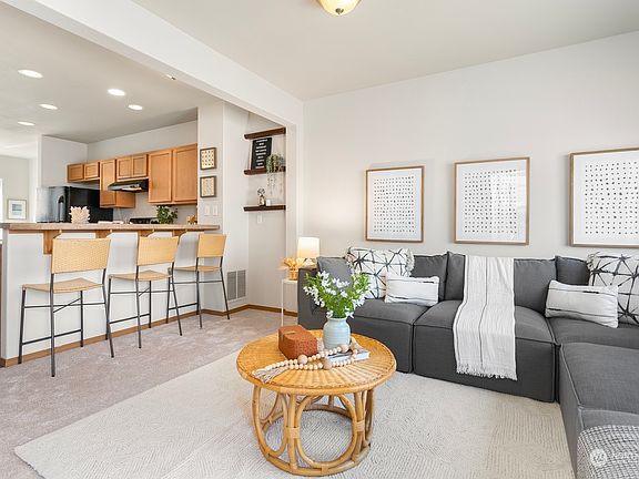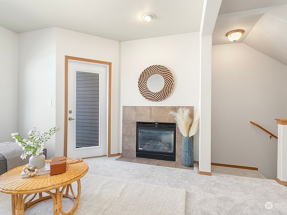Fantastic townhome in the desirable, gated community of Stonebrook. This home offers a great floor plan with parking & storage on lower level, main living spaces on the 2nd level & bedrooms on 3rd level. The open kitchen with breakfast bar, seamlessly connects the formal dining area & living room with cozy gas fireplace & patio access - making entertaining a breeze. Upstairs, you'll find a spacious primary suite with attached bath + ample closet space, plus a second bedroom, full bath & convenient laundry closet. The entry level features a tandem 2-car garage with plenty of storage. Enjoy a prime location with quick access to Tacoma, shopping, dining, trails & more! Brand new interior paint & carpets. Well run HOA, low dues.