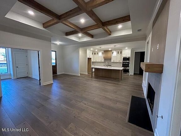 Custom 4 bedroom, 2.5 bath home with 3 car garage. Most of sq ft on first floor. Open concept. Great room has tray ceiling with cedar beams and wood burning fireplace. Large kitchen with coffee bar, quartz tops, stainless steel appliances. tile back splash, and large walk in pantry. Oversized breakfast area with custom cabinets. Primary suite features large bedroom, split vanities, make up area, walk in shower, large walk in closet with custom shelves with direct access to laundry area, and safe room. Split to other side of downstairs are 3 bedrooms (2 are set up as music room and office) and a full bath. Upstairs is large bonus room and large walk in attic space. Screened in back porch