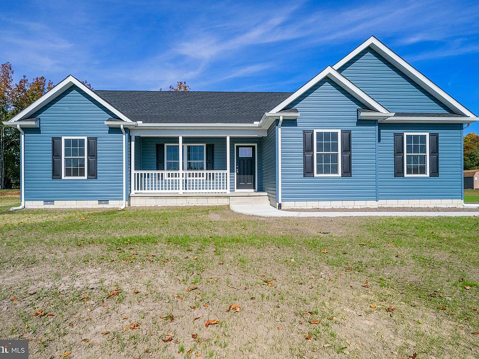 This new country ranch home offers a lot to the lucky first owner. A large 1.3 acre open lot, two-car garage, open floor plan, stainless appliances, easy-care vinyl plank flooring in living/dining room and kitchen, carpet in bedrooms, efficient electric heat pump heating and cooling. Country location but not far from Bridgeville.