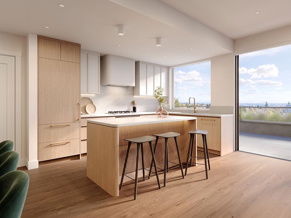 Establish your parkside prominence at Rhodes, a stunning collection of 1, 2, and 3 bedroom homes on Queen Elizabeth Park at Kersland Drive and 37th Ave. Rhodes´ 62 homes range from 589 square ft to 1290 sq ft, and are steps from QE Park´s lush greenery, Oakridge Centre, the Canada Line, and more. Penthouse homes feature 9' ceilings and oversized patios extending off the living area. Most garden homes feature 10' ceilings and terraced patios to enjoy parkfront living. Amenities include 1278 square ft of gym space, and a wood-ensconced sauna with outdoor rain shower. Standard features include fully integrated Miele appliances with gas cooktop, engineered hardwood floors, in-floor heating in ensuites, and bedrooms that allow for king size beds. Visit us at 5628 Cambie St to view all homes.