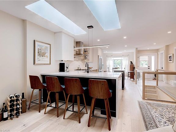 Stunning bungalow situated in Southeast Burlington boarding Oakville. Professionally renovated with Extensive upgrades and architectural details, beautiful wide-plank hardwood floors throughout, luxurious bathrooms, two fireplaces. You’ll love the fabulous custom kitchen with 2 skylights, custom cabinetry, high end appliances, waterfall quartz counter, breakfast bar and separate dining area. Graciously entertain in the spacious living room featuring a gas fireplace and walkout to a private fenced patio. Main floor laundry room. Lower level features a Recreation room with fireplace, 3rd bedroom with ensuite, ideal guest suite and plenty of storage. Bonus, total of 3 parking spaces, 2 vehicles in driveway and one in garage. Excellent location within close proximity to the lake, parks, shops, highways & GO Station. A terrific carefree lifestyle!