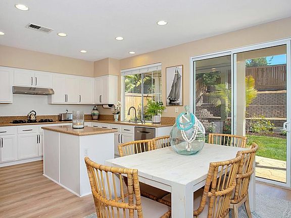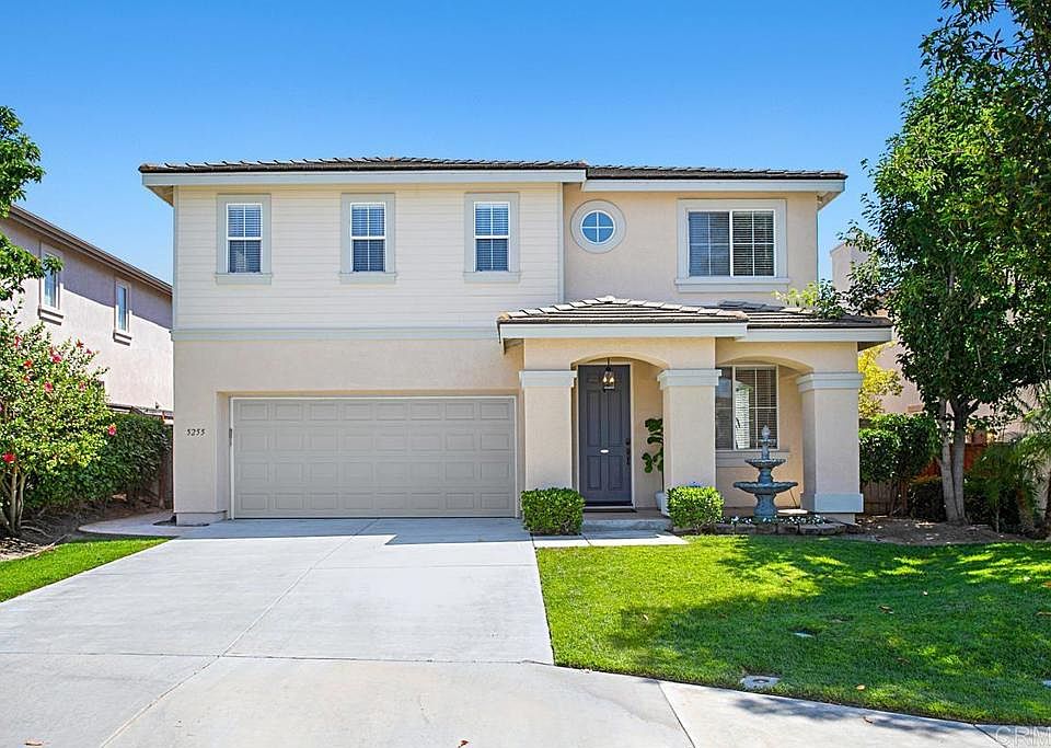 Gorgeous Updated 4 bedroom, 2.5-bathroom, with a large yard and FULLY OWNED SOLAR! Beautiful fountain and front porch welcome you as you step into the foyer that naturally flows into the formal living areas of the home. Continue to the heartbeat of the home where kitchen, family and daily dining areas offer a seamless connection to one another while the fireplace casts a warm glow over the space. Kitchen offers a spacious center island, white cabinetry, quartz counters and luxury appliances that include Sub-Zero refrigerator, Dacor double ovens, and Bosch dishwasher. Large daily dining area just off the kitchen offers quick access to the backyard. Expansive family room displays a beautiful fireplace, and a wall of windows that overlooks the private yard. Powder room with a lovely vanity completes the lower level. Gorgeous luxury vinyl plank floors span the lower areas of the home and guide you to the upper level. Upstairs features French doors that lead you into the master bedroom! Master bathroom boasts dual sinks, deep soaking tub, separate shower, and expansive walk-in closet. Three spacious bedrooms (two with walk-in closets), hall bathroom, and laundry room complete the upper level. Outdoors you will find a private yard with a large covered patio, incredible terraced planters and a perfectly balanced combination of grass, trees, roses and plants. Additional features of the home include new vinyl plank floors throughout with neutral carpet in the bedrooms, AC, Solar (OWNED) and an oversized 2-car garage. Located within the highly sought after Bonsall West Elementary school. The Master Planned Arrowood Community provides an unparalleled lifestyle offering an exquisite Junior Olympic pool, community clubhouse & BBQ's area, walking trails, playground, village center to gather, play and socialize, & built around a championship golf course. Adjacent the community is Luiseno Park where you can enjoy lighted tennis courts, sports fields, & playground.